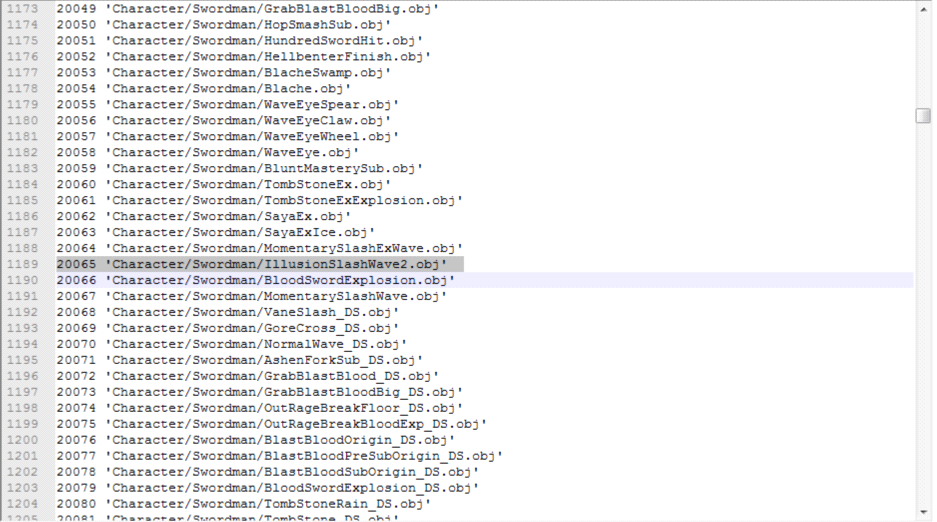 拿西岚剑气20065为例,可以发现剑气是IllusionSlashWave2.obj文件,